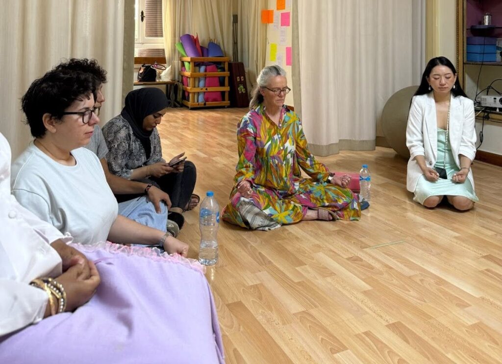 Justine leading a breathwork exercise with NGO partner staff from Humanities Without Conditions